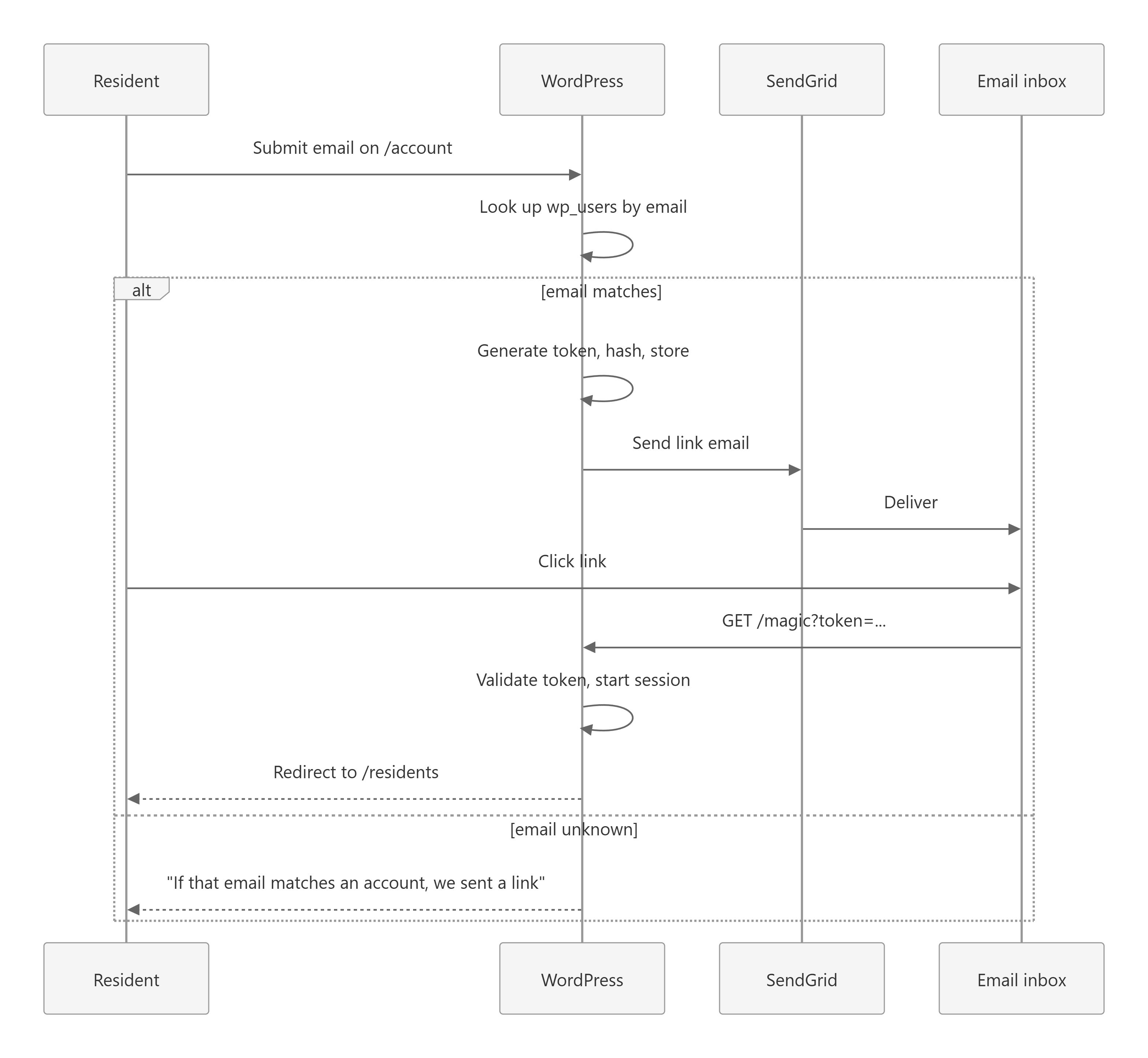 Res->>WP: Submit email on /account