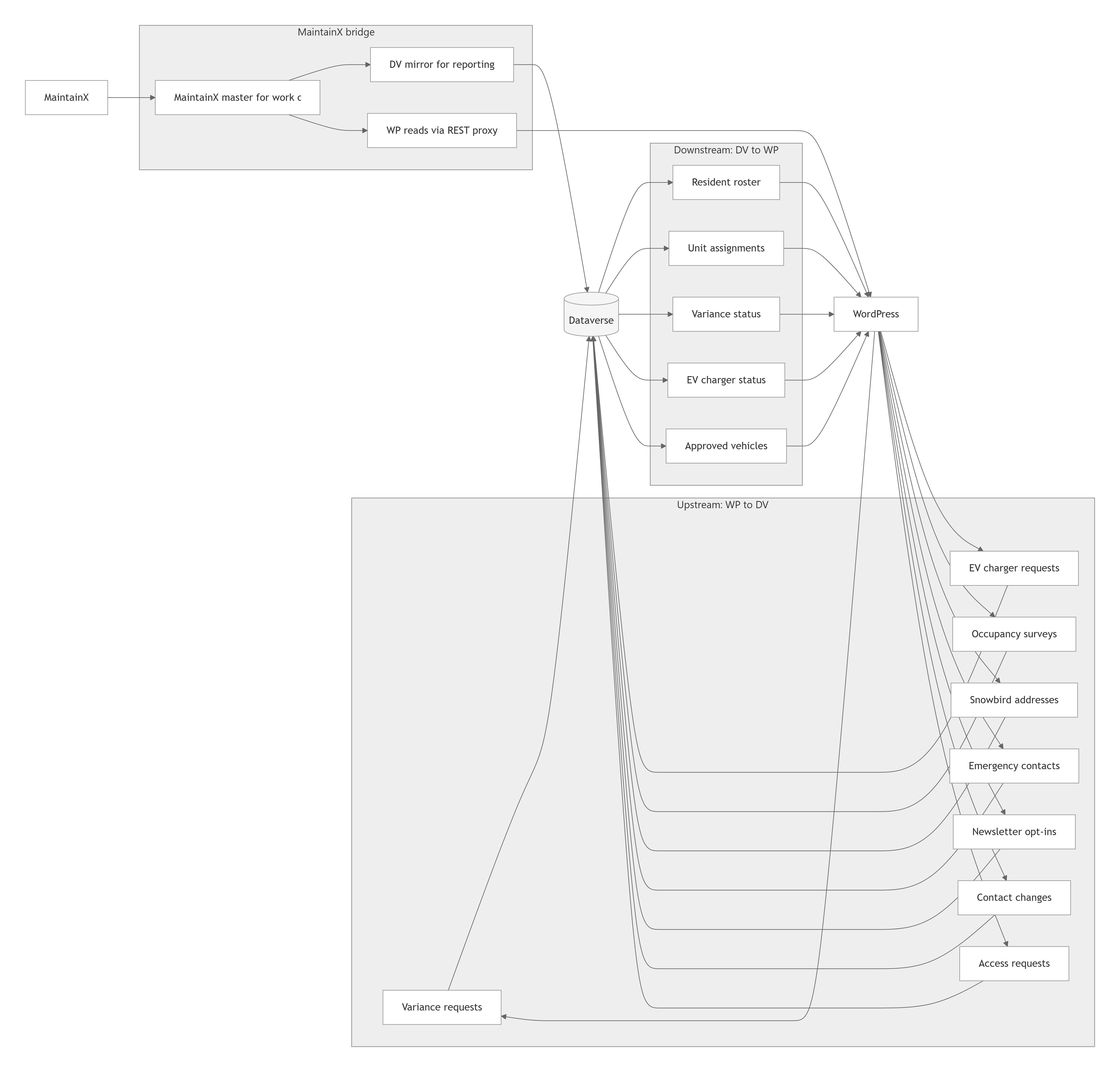 FLOW->>WP: Update dashboard via DV-WP sync (non-loop)