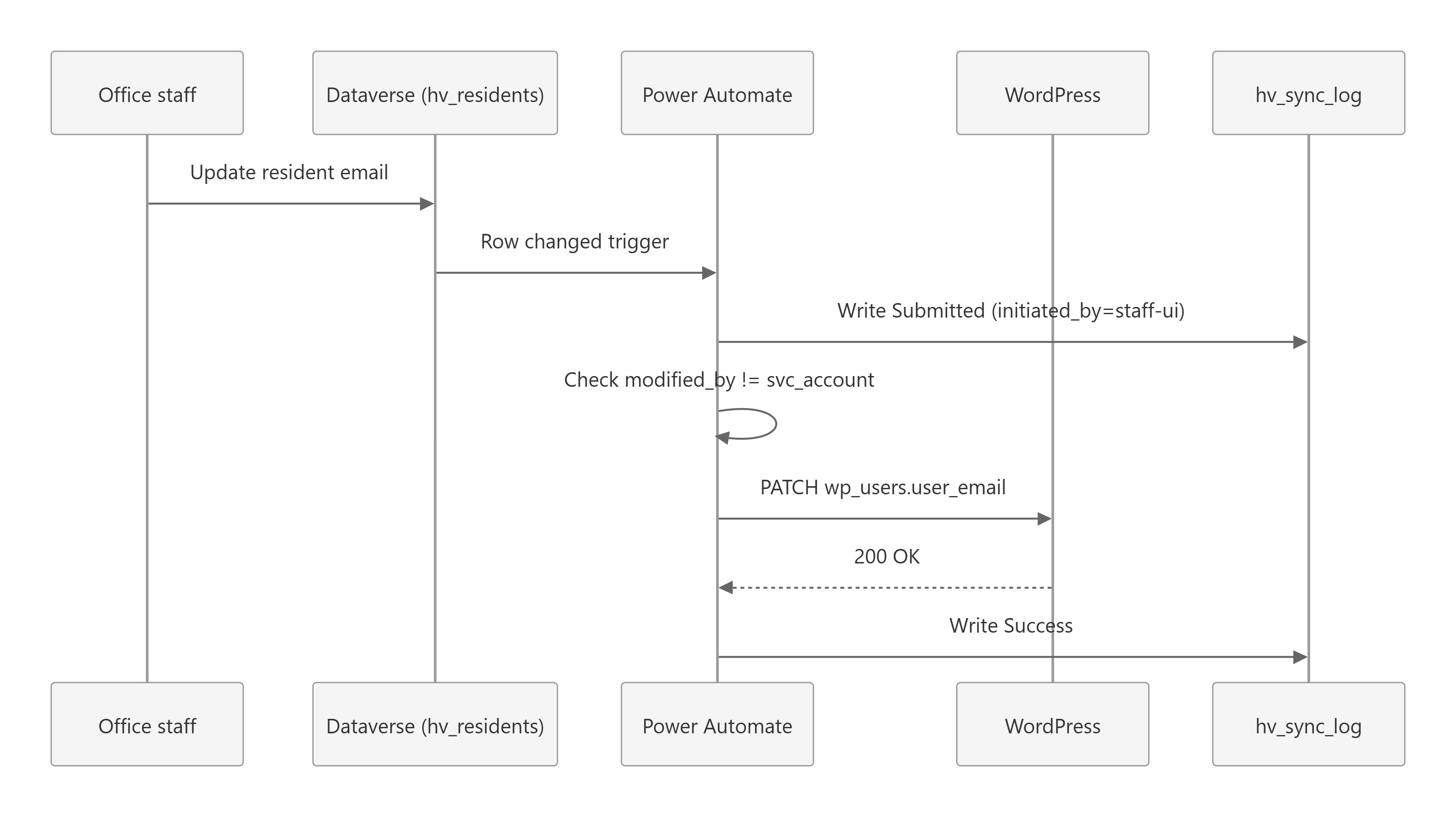 FLOW->>LOG: Write Submitted (initiated_by=resident)